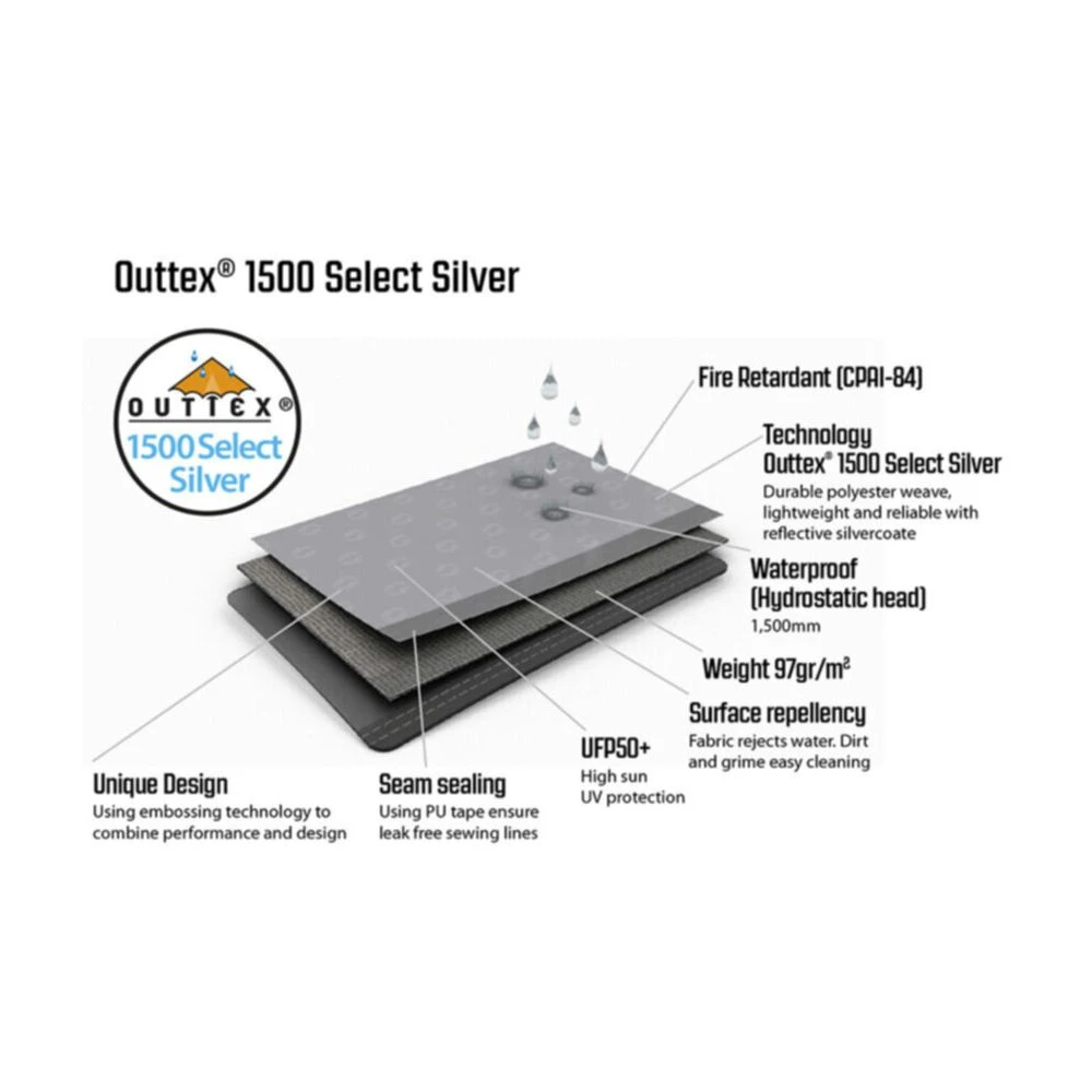 Outtex fabric in silver colour with 1500mm hydrostatic head