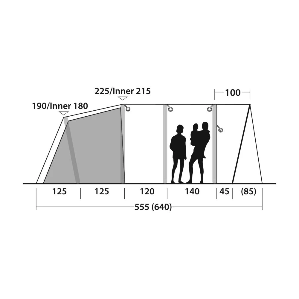 - Dimensions (Set up): L640 x W320 x H225 cm