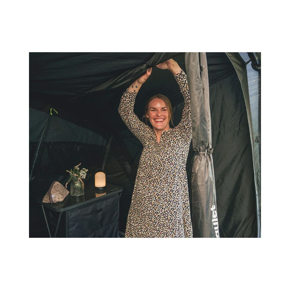 The Outwell Florida 5 is a premium inflatable tent, ideal for family camping. Its hybrid construction combines inflatable air tubes with a sturdy steel pole at the front porch area, adding stability and strength. As part of Outwell’s Premium collection, it incorporates advanced technical features to enhance your camping experience, including a fully sewn-in groundsheet, Quick & Quiet access doors, ONS Light System compatibility, and a Dual Front design for superb versatility across a range of weather conditions. Designed to accommodate up to five people comfortably, the Florida 5 is especially well-suited to four or five families. It features a three-zone layout—with generous living space, darkened Ambassador bedrooms for improved sleep, and a flexible porch area perfect for relaxing, dining, or storage.