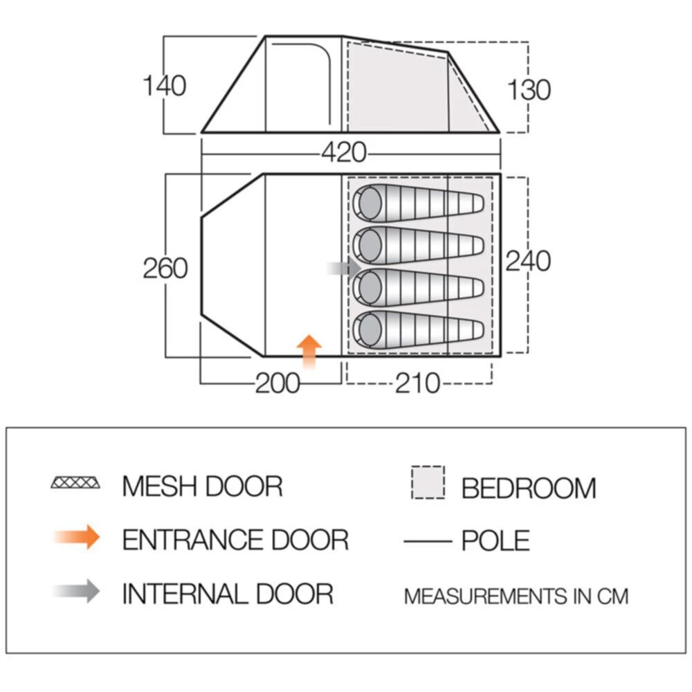 A versatile four-berth tent, ideal for Spring to Summer time camping in fair weather conditions, with a simple tunnel design for an optimal pitching experience. The lightweight nature of the 70-Denier polyester fabric ensures the shelter is resilient to weather conditions, yet lightweight enough to carry on foot if required.