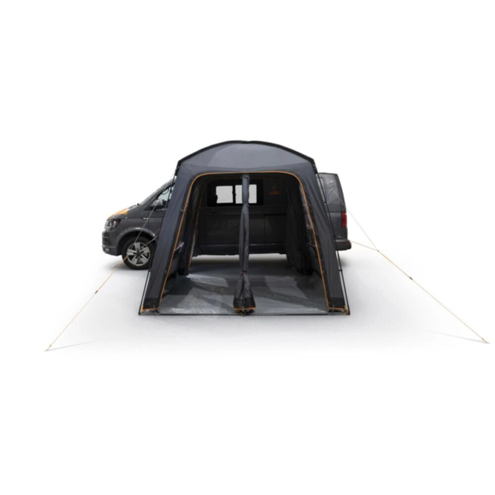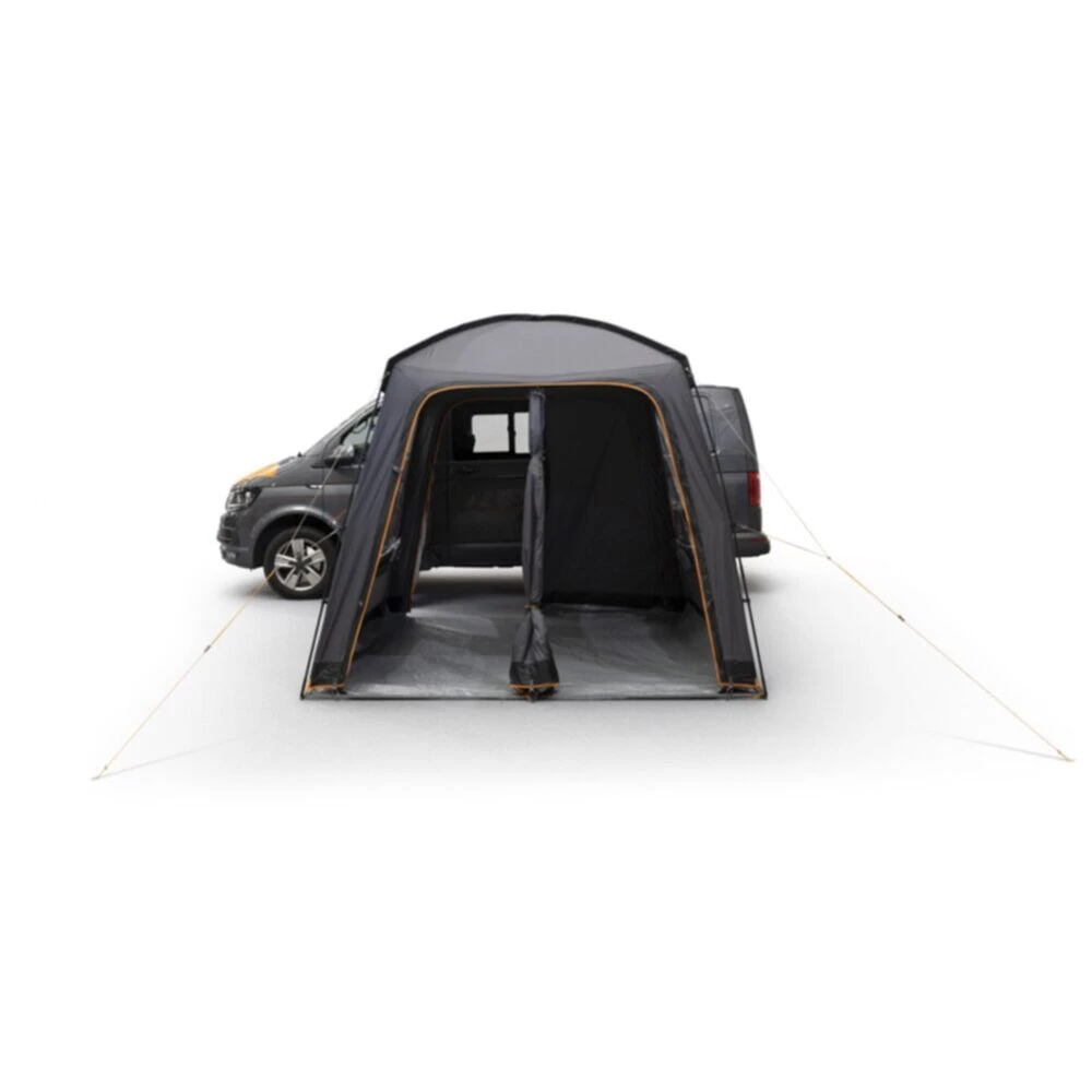 The Vango Tailgate Hub II Low, refreshed with improved fabric and a new colourway, is one of Vango’s pioneering rear-attachment awnings, perfect for couples or solo travellers with an adventurous spirit. It is designed for versatility and can be attached to the rear or side of your camper van, offering maximum flexibility and comfort. As an entry-level drive-away awning, it features lightweight 75 Denier polyester fabric, making it ideal for touring campers. Its drive-away capability allows it to stand independently, enabling easy detachment and the freedom to take your vehicle off-site whenever needed.